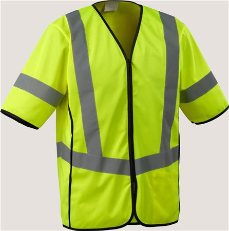 Gul trafikvest, klasse 3, med fluorescerende effekt og lodrette/vandrette reflekser. Gennemgående lynlås, inderlomme og kantet med bånd. Designet til at bære over andet tøj.