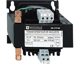 1-Faset kontrol og skilletransformer fra Murrelektronik, P: 25VA, IN: 208...550VAC, OUT: 2x115VAC, til skrue og DIN-skinne montering.