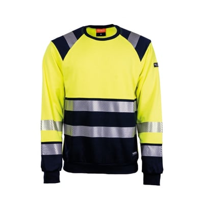 Flammehæmmende sweatshirt fra Tranemo Workwear i gul og marineblå, str. L.