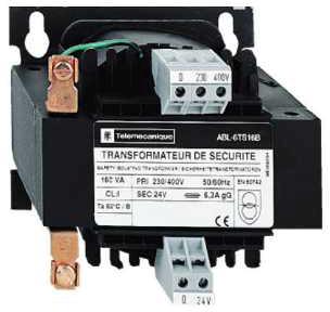 ABL6 transformer leverer vekselstrøm til styrekredse og isolerer dem fra lysnettet. Nominel indgangsspænding på 230 til 400Vac, nominel udgangsspænding på 230Vac og nominel effekt på 250VA.