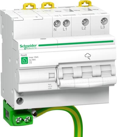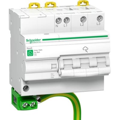 Overspændingsafleder/transientbeskyttelse Quick iPF 10kA 400V 3PN til boligtavler i kombi/sammenbygget med MCB beskyttelse. Montage i tavlen med direkte forbindelse til tavlens jordklemmen med funktionel og virksom jordforbindelse i TT eller TN-S system.