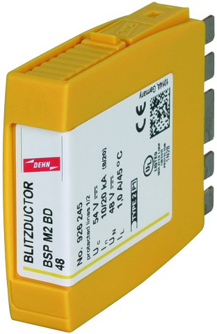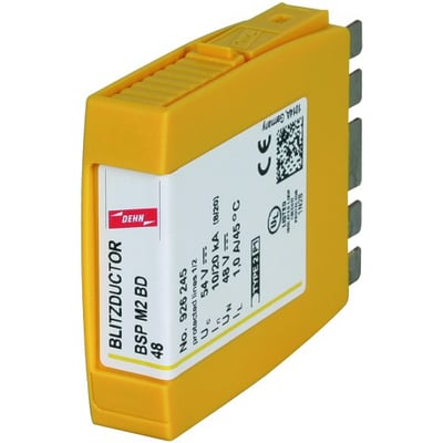 Modulopbygget transientbeskyttelse med stikbart 2-polet modul til 48V svagstrømskredse. Beskytter galvanisk adskilte signaler og balancerede interfaces.