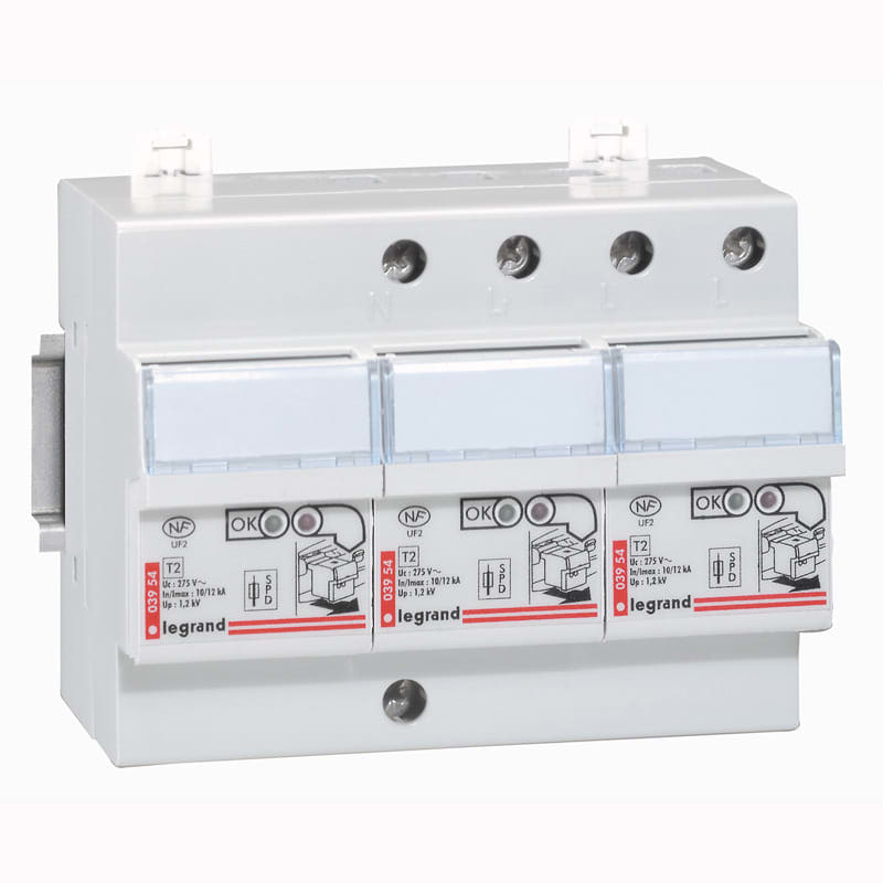 Denne 3P+N transientbeskyttelse fra Legrand er designet til TT og TNS systemer og har indbygget sikring med nul i venstre side. Den er ideel til beskyttelse af forbrugsenheder i bolig- og andre mindre installationer.