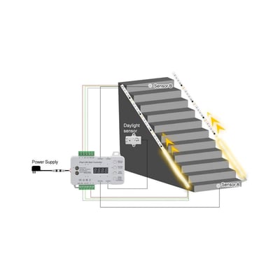 Komplet LED stripsæt til trapper med sensor. 2x5 meter, 12W, 24V, IP20, 3000K. Dæmpbar.