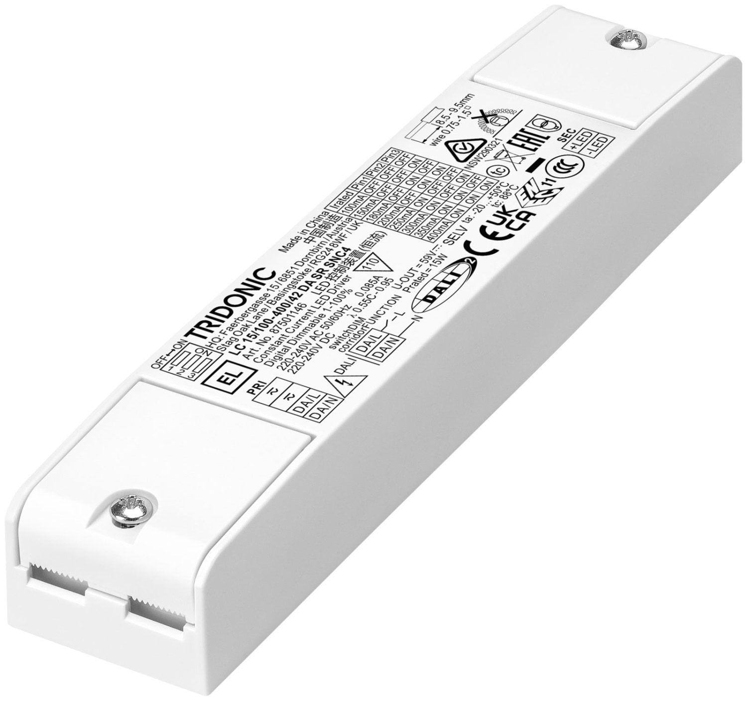 Tridonic LED driver DALI-2 LC 15/100-400/42 DA SR SNC4