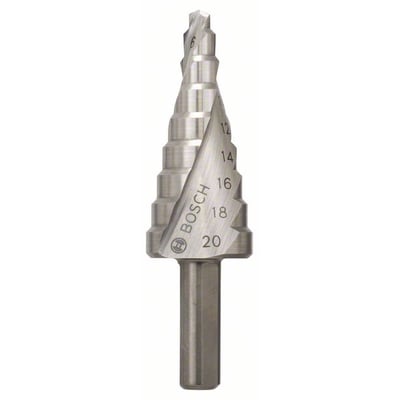 Robust trinbor fra Bosch i HSS stål, ideel til præcis boring i forskellige materialer. Dækker diametre fra 4 mm til 20 mm.