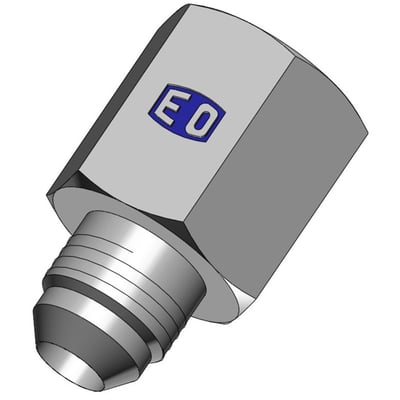Indskruning med indvendig BSP gevind og udvendig JIC gevind til udkrævning af hydraulikrør med 37 graders konus. Flere støtteringe kan bruges til forskellige rør dimensioner.