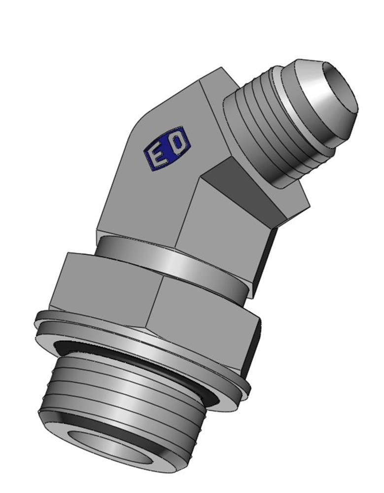 45 graders vinkel med udvendig JIC gevind og drejelig NPT udvendig gevind med o-ring til hydraulikrør med 37 graders konus.