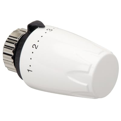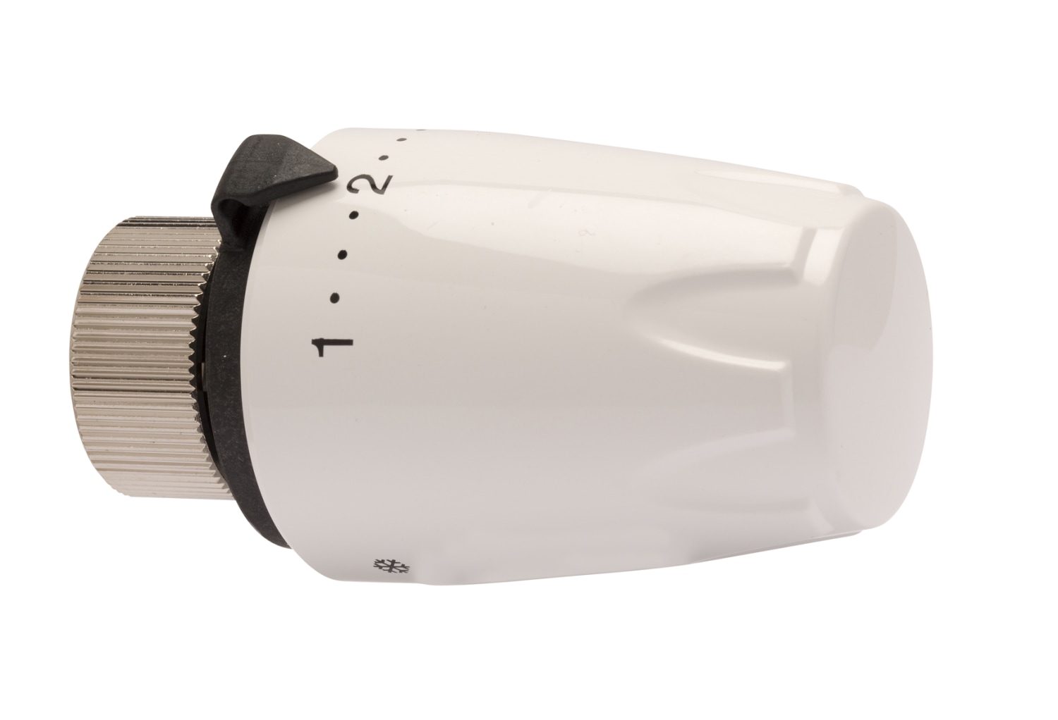 Pålidelig termostat med indbygget føler og integreret adapter til MMA. Med hvidt håndhjul og automatisk frostsikring. Til varmeanlæg.