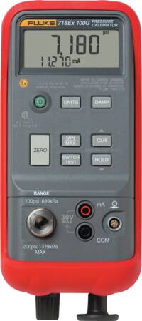 Fluke 718Ex er en ATEX II 1G EEx ia IIC T4-godkendt trykkalibrator. Den har en indbygget tryk/vakuum håndpumpe med finjustering og afluftningsventil. Fås nu også med områder på 30, 100 og 300 psi (2, 7 og 20 bar).