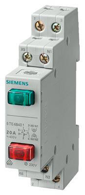 Siemens trykkontakt med 1NO og 1NC kontakt, LED-lys og 230V spænding. Ideel til styring af elektriske anlæg i tavler.