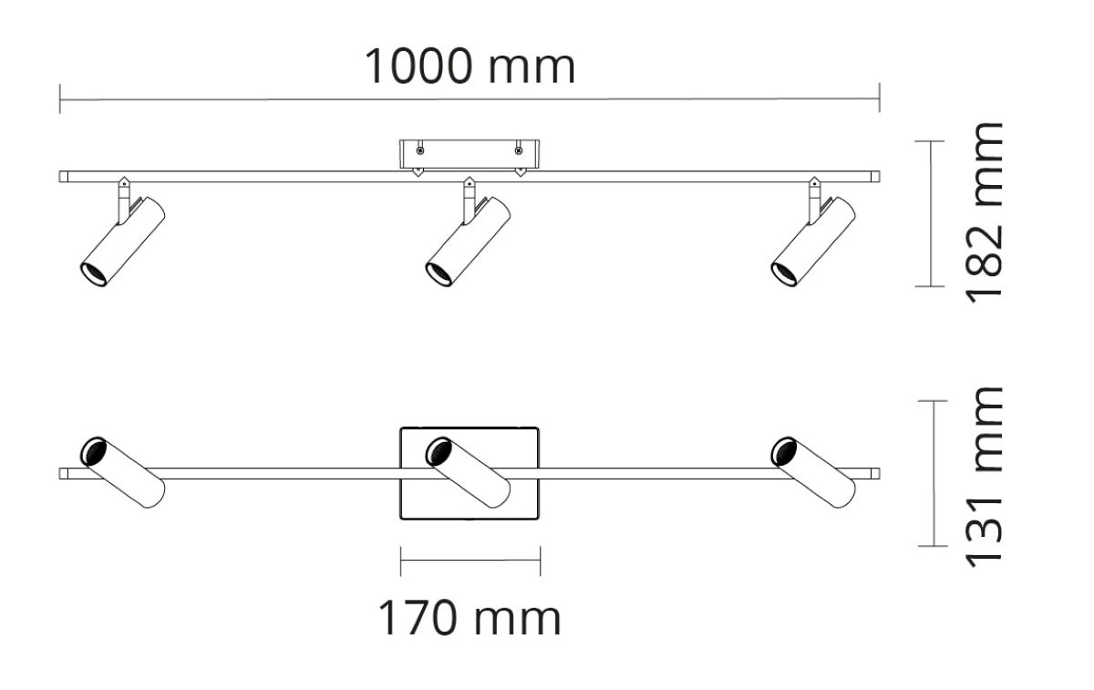 Elegant skinnespot med justerbart hvidt lys (2000-2800K). Nem installation og retningsbestemlig belysning. Sort aluminium, 1000 mm lang.