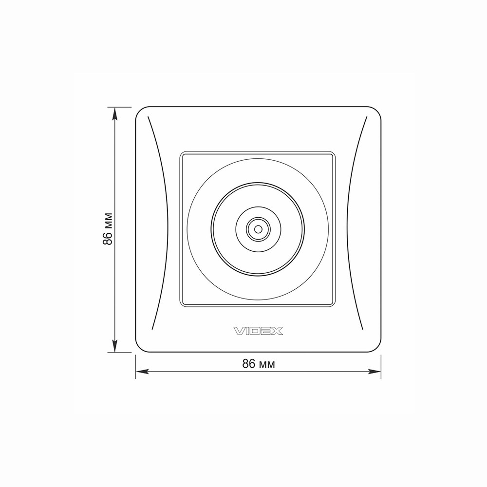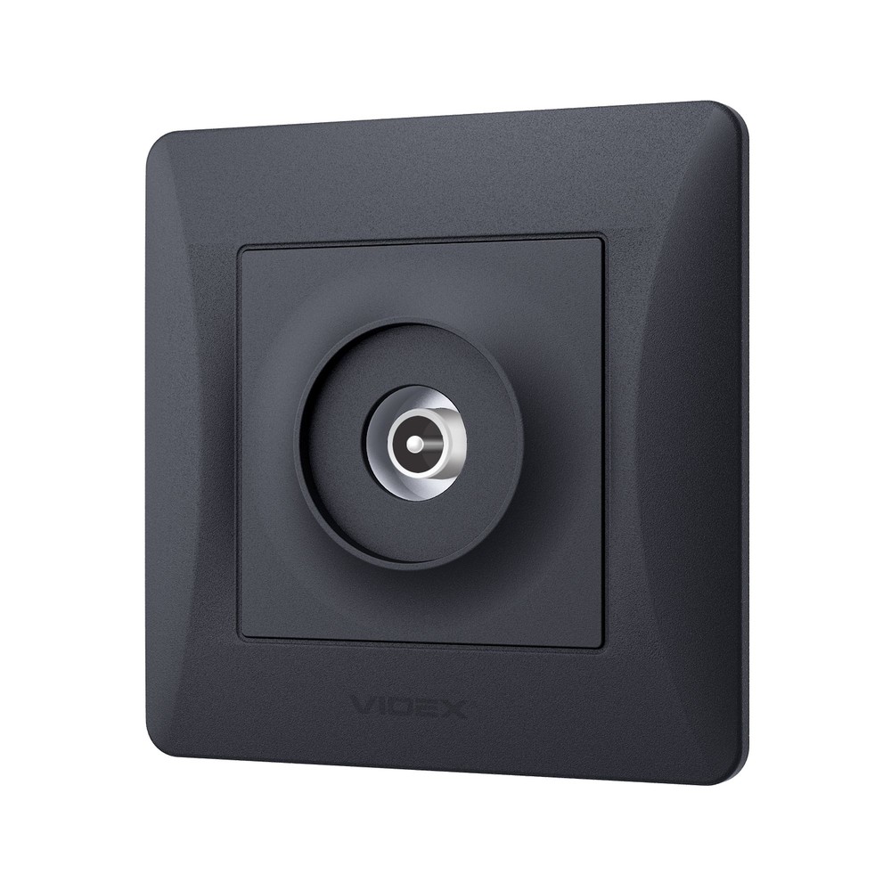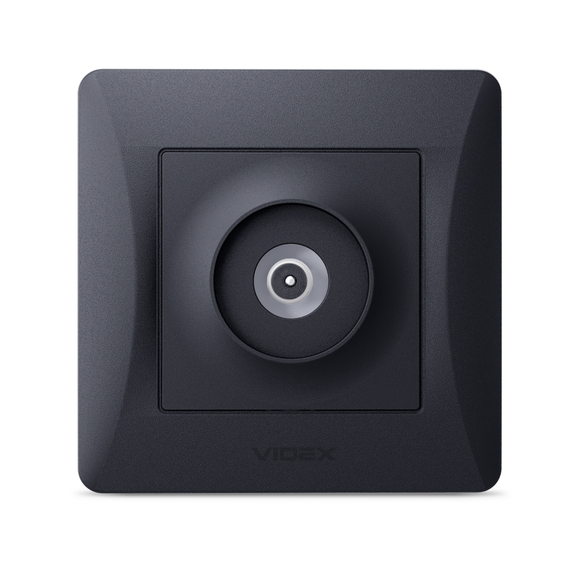Enkelt tv-stik i sort PC plastik med IP20 klassifikation. Mål: 86x86 mm.