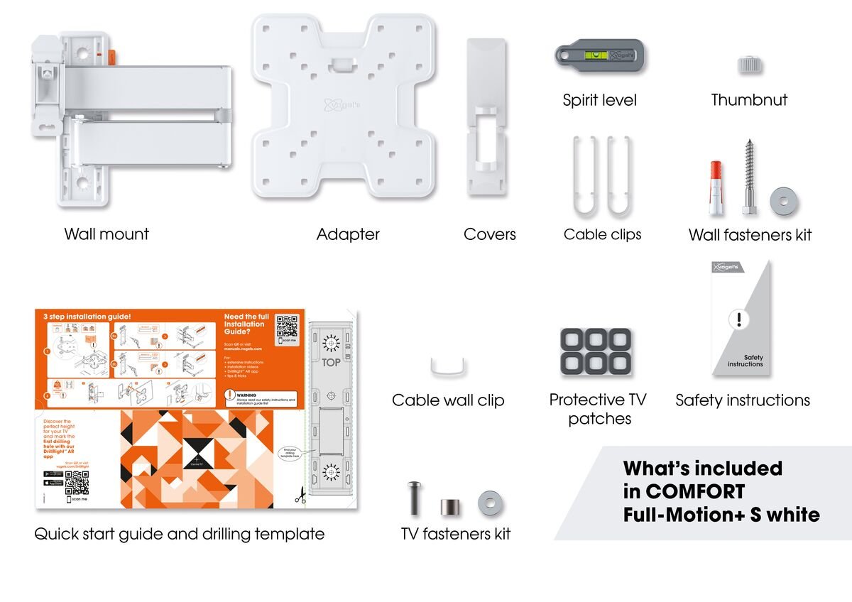 Dette stilfulde COMFORT Full-Motion+ vægbeslag til dit TV kombinerer sikkerhed, design og optimal seerkomfort. Vægbeslaget er yderst robust og designet til intensiv brug. Med en drejefunktion på op til 180° kan du nyde dit TV fra enhver vinkel i rummet. Vinkling er mulig op til 20° (10° fremad og bagud).