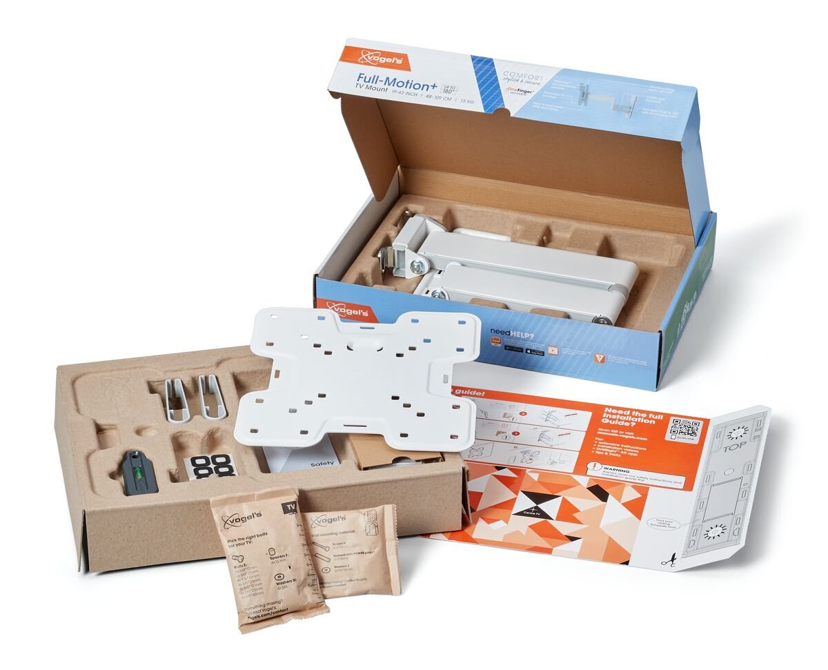 Stilfuldt og sikkert vægbeslag til TV. Full-motion design giver optimal synsvinkel fra alle retninger. Passer til TV fra 19-43" og op til 15kg.