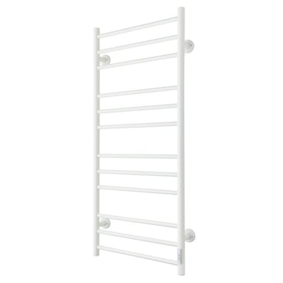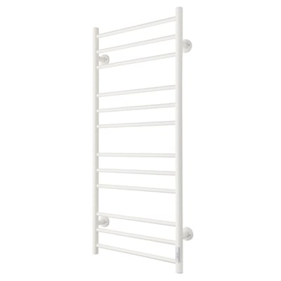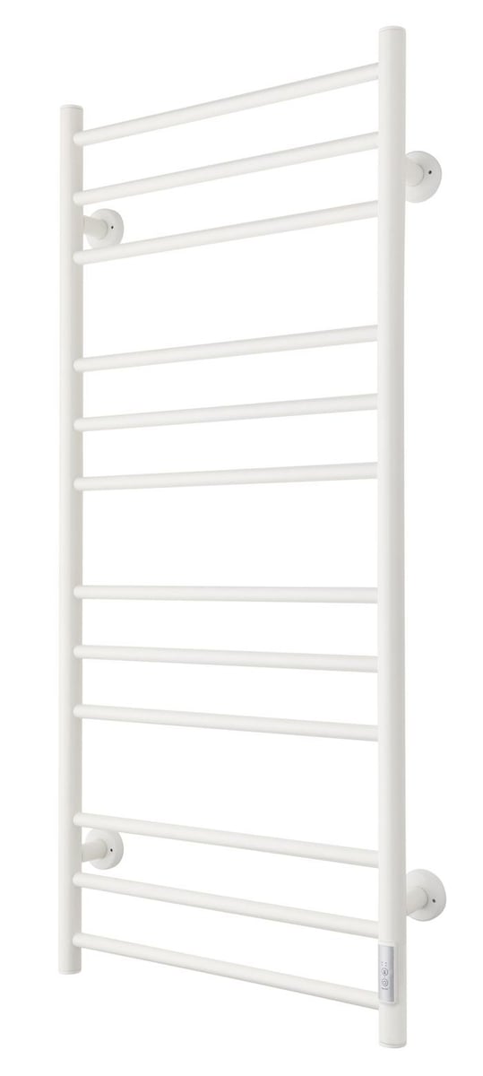 Eldo 12 timer håndklædetørrer i hvid. Den har en indbygget termostat og timer-funktion, der kan slukke efter 2 eller 4 timer.