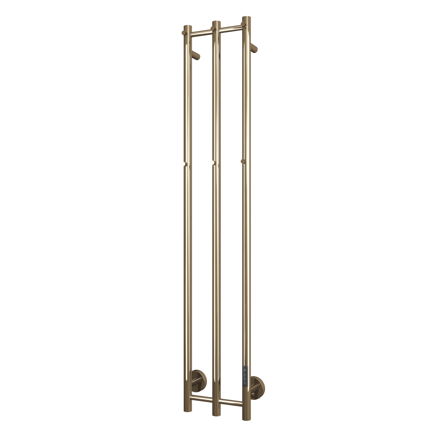 Stilren håndklædetørrer i guld med 6 kroge. Indbygget 2/4 timers timer eller konstant drift. IP44 godkendt.