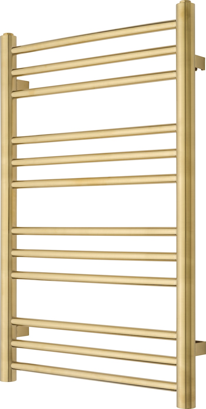 Denne vandbårne håndklædetørrer er designet til at give dig varme og komfort. Modellen PLUS 12-500 i børstet guld er ikke kun funktionel, men også en stilfuld tilføjelse til dit badeværelse.