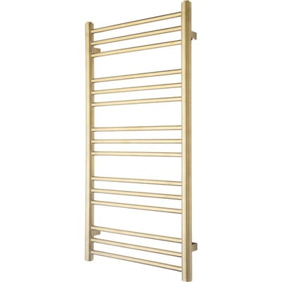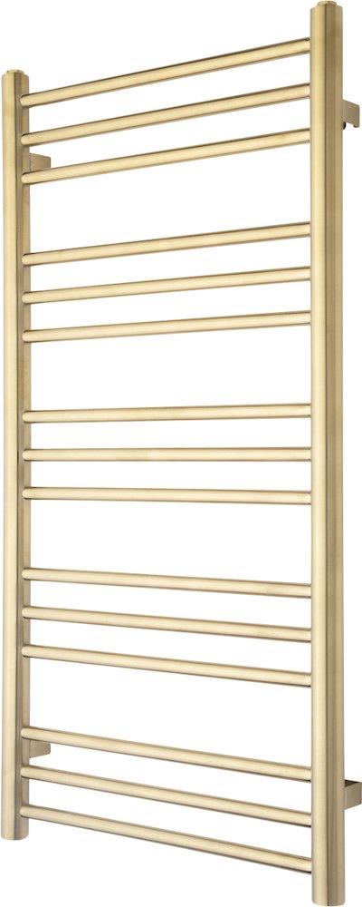 Vandbåren håndklædetørrer (990 x 500 mm) i børstet guld. Tilslutning: ½". Kræver ventilsæt eller varmelegeme (tilkøb).