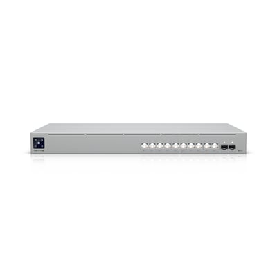 Professionel 1U switch med 10 porte, Layer 3, Etherlighting™ PoE+++. Har 10x 10 GbE og 2x 10G SFP+ porte. Kræver UniFi RPS.