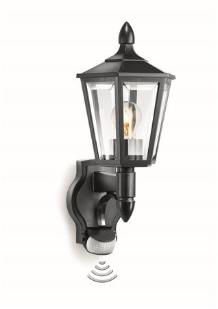 Klassisk udendørs sensorstyret lys L 15 fra Steinel, ideel til facader og indgange. 180° dækningsvinkel, rækkevidde op til 10 m, justerbar tids- og skumringsgrænse, samt 90° justerbar sensor.