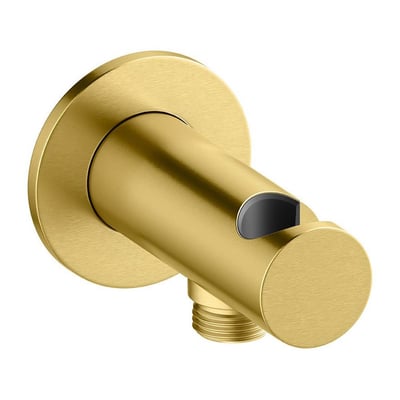 Bruseholder med udløb i børstet messing finish. Tilsluttes nemt til håndbruser med 1/2" gevind.
