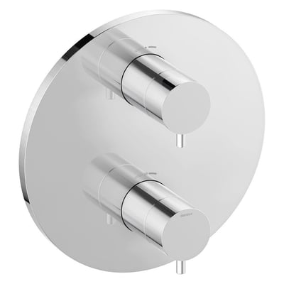 Elegant forplade i krom til indbygningstermostat med et stilrent, rundt design.