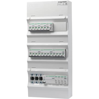 Gruppetavle udført iht. DS/EN61439-3, opbygget i LK/Schneider. Høj kvalitet med terminalrør på interne ledningsforbindelser og opmærket med ”max A” ved automatsikringerne.