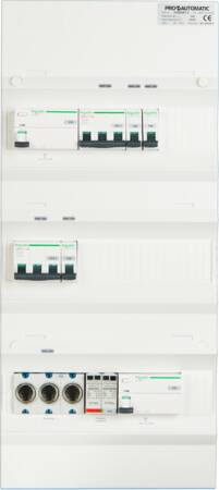 Denne tavle er bygget med en Schneider UG18 hvid afdækning og indeholder Schneider Acti9 komponenter. Transientbeskyttelsen er fra Solar plus.