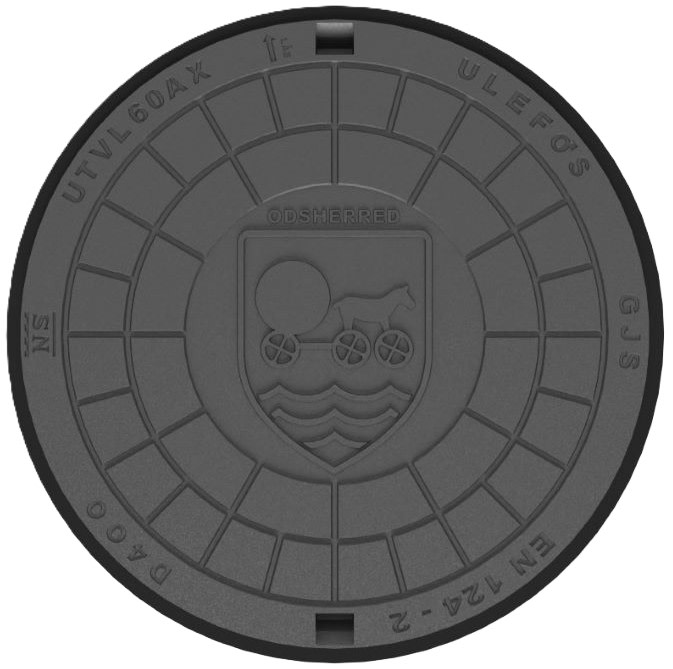 Dæksel 600 mm med påstøbt pakning og fjederlås, Odsherred fra Ulefos.