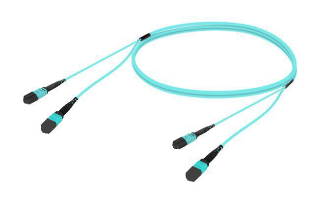 Præ-termineret MPO Trunk kabel med 24 Multimode OM4 fibre og 2xMPO12 hunstik. Længde 35 meter (uden fanout). Fanout længder: 152 cm og 84 cm.