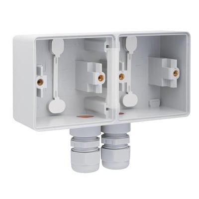 Hydro stænktæt underlag med 2 moduler og to M20-indgange, inklusiv kabelforskruninger. Opnår kapslingsklasse IP55 og er slagfast samt gennemfarvet.
