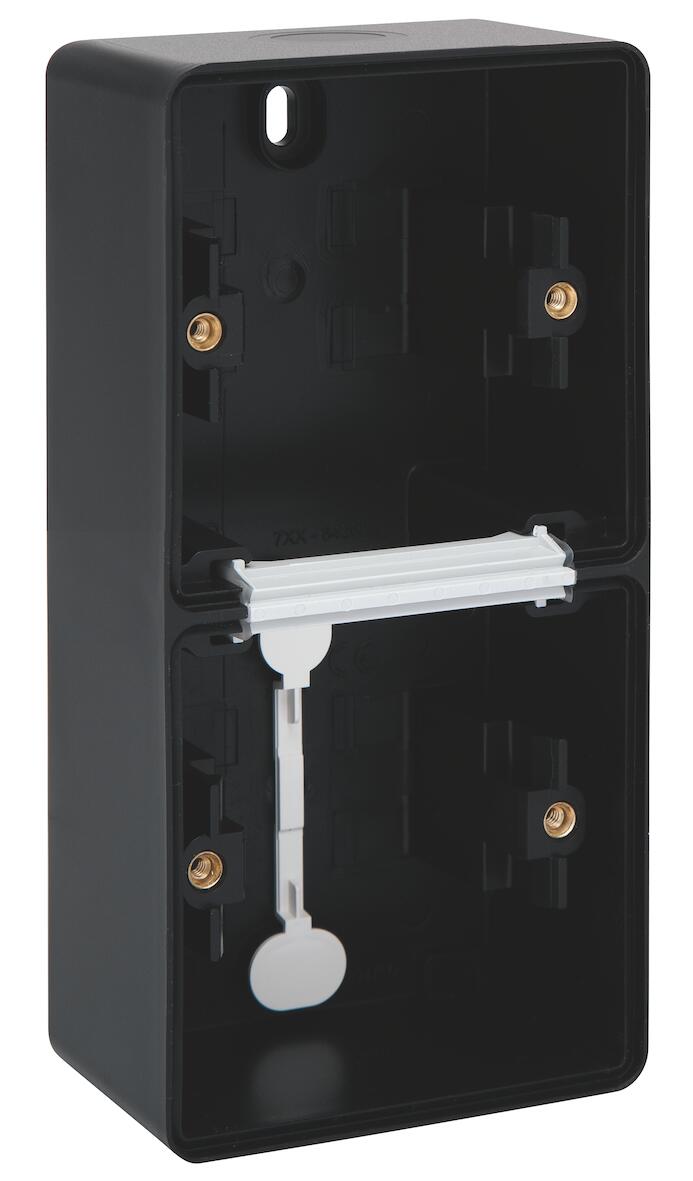 Stænktæt 2-modul underlag med 2 membranindgange. Opnår kapslingsklasse IP55. Slagfast og gennemfarvet. Fås i grå, hvid eller sort.