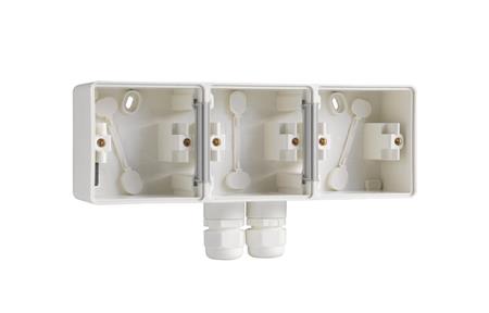 Hydro stænktæt underlag med 3 moduler og to M20-indgange, inklusiv kabelforskruninger. Opnår kapslingsklasse IP55. Slagfast og gennemfarvet i hvid.