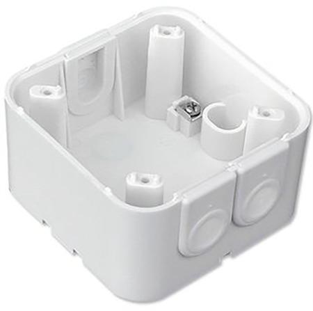 Tilbehørssokkel til udvendig montering af Indoor 180 vægasensoren. Beskyttelsesgraden kan øges til IP54 med tilbehørsramme.