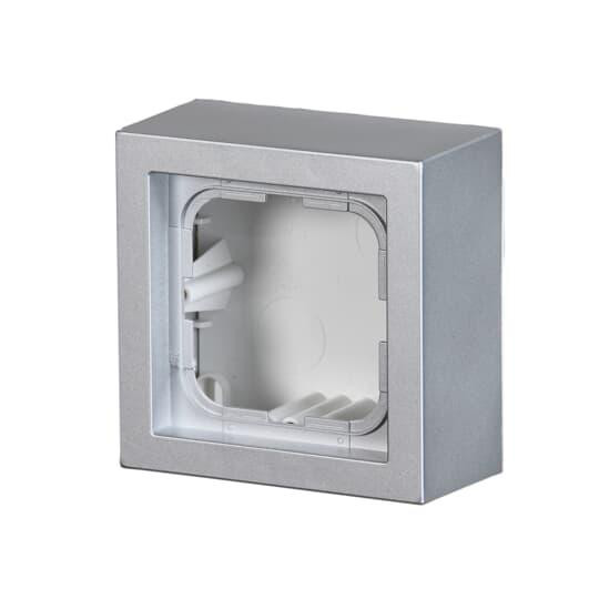 Underlag inkl. ramme for udvendig montering. 1 modul, aluminium (RAL9006) integreret ramme, dybde 26mm. Fra ABB-Impressivo serien.