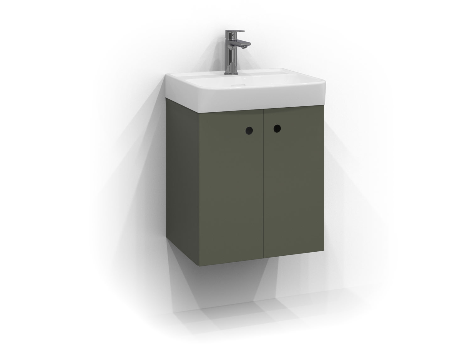 Stilrent underskab i salvie mat til badeværelset. Perfekt til mindre rum med sit minimalistiske design og fugtbestandige metalplade.