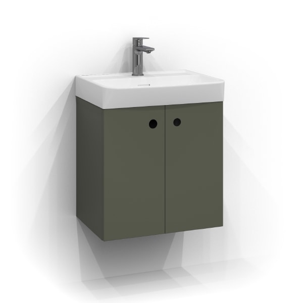 Underskabet har en elegant salvie mat finish, der tilføjer et stilfuldt touch til indretningen. De to låger er udstyret med soft close-funktion, der sikrer en lydløs og blid lukning, og de har integrerede greb for et minimalistisk udseende.