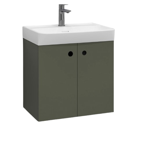 Stilfuldt underskab i salviegrøn mat finish med 2 låger. Mål: 55x35x50 cm. Inkluderer soft close og greb.