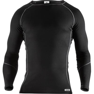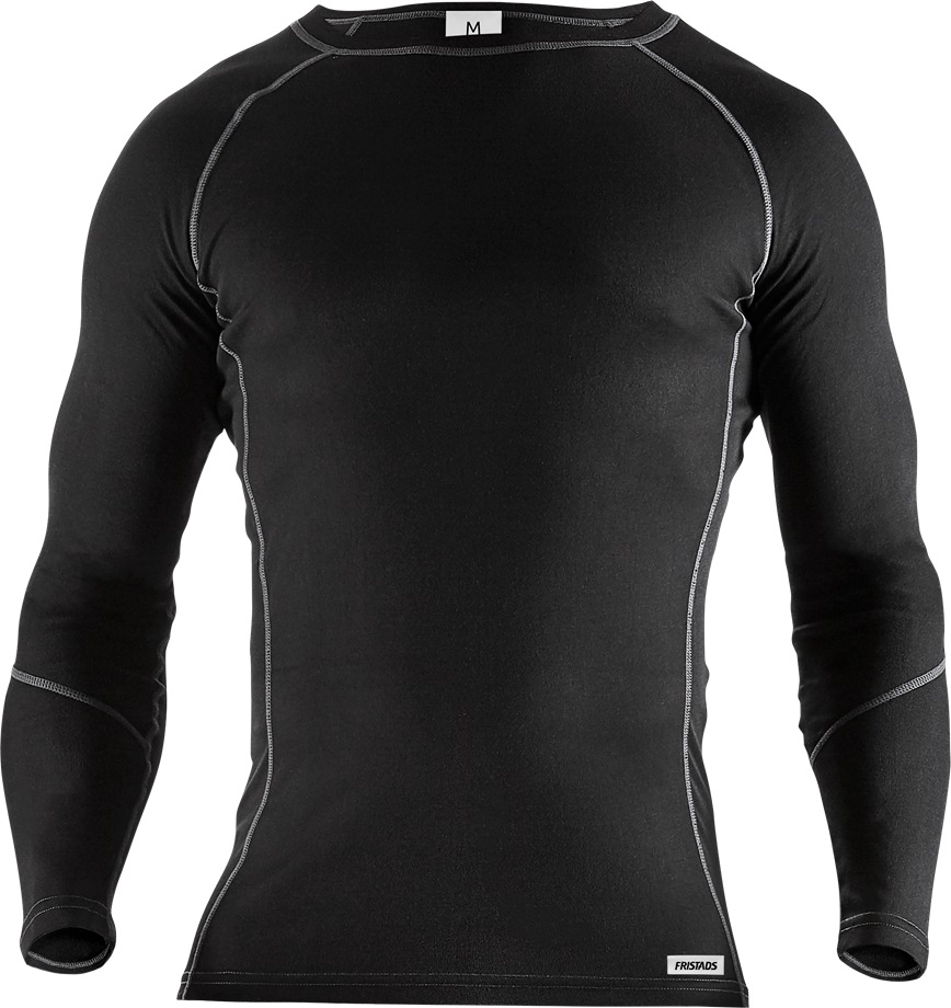 Lange ærmer, rund hals og flatlock-søm i kontrastfarve. Komfortabelt og funktionelt undertøj.
