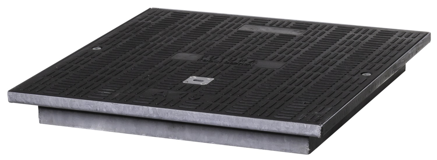 Uni-Seals dæksel i komposit til kabelbrønd. Mål: 1200 x 600 mm. Belastning: 12,5 ton.