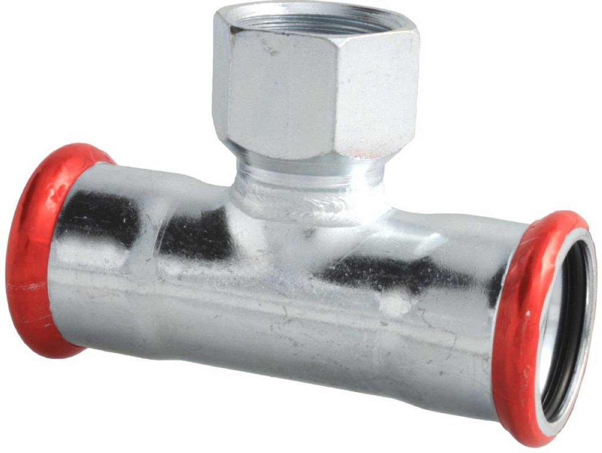 Unico forzinket T-stykke med indvendigt gevind på afgrening, og presmuffer. Gevindmuffen på afgreninger giver mulighed for at skifte samlingsmetode, eller monter...