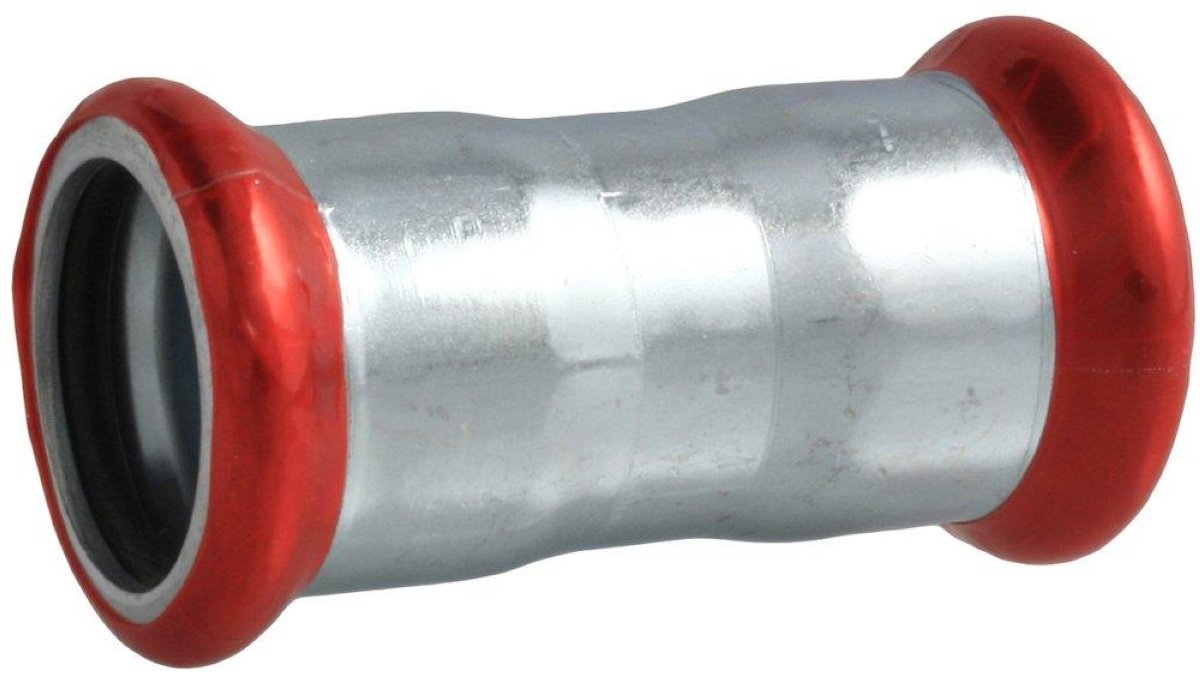 Unico forzinket dobbeltmuffe til press. Anvendes til bl.a varme,- køl,- og industrianlæg. Når en samling er presset korrekt forsvinder den røde film på kraven af fittings...