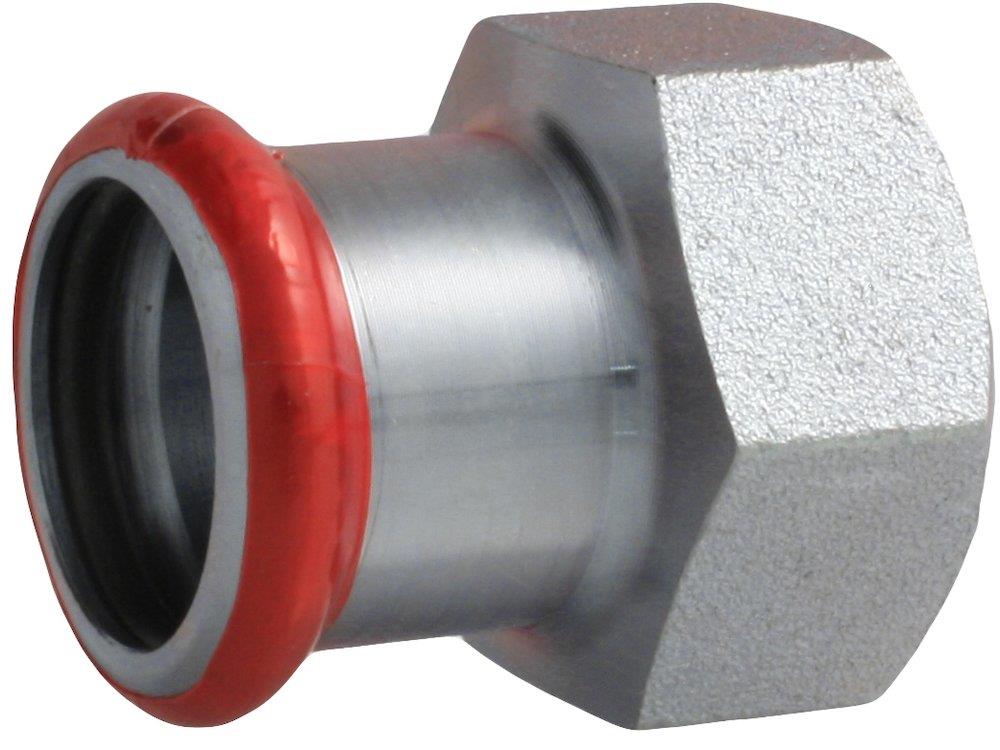 Forzinket overgang med presmuffe og indvendigt gevind til varme-, køl- og industrianlæg. Identificer nemt korrekt presning via rød film.