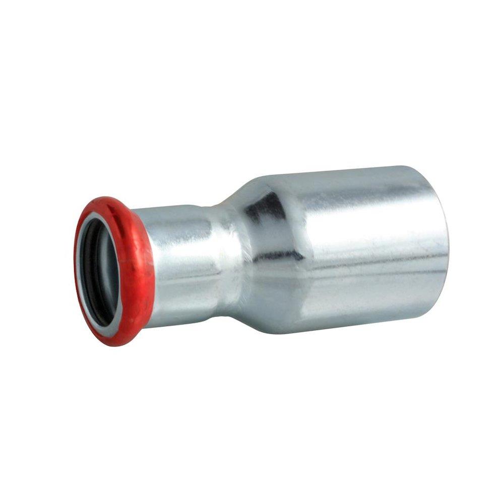 Unico forzinket reduktion med nippelende og presmuffe. Anvendes til varme, køl og industrianlæg. Ikke egnet til drikkevand!