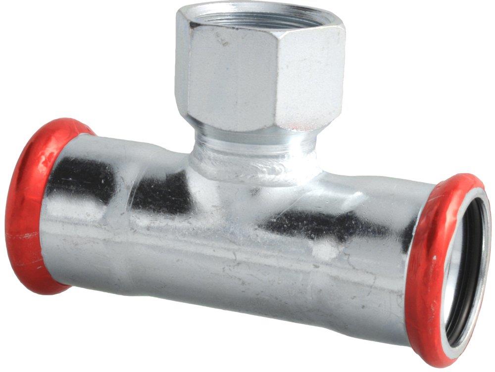 Forzinket T-stykke med indvendigt gevind på afgrening og presmuffer. Ideel til varme-, køl- og industrianlæg.