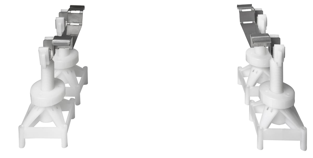 Fire stk. højdejusterbare fødder til vinylafløb. Bruges til montage i betonkonstruktion.