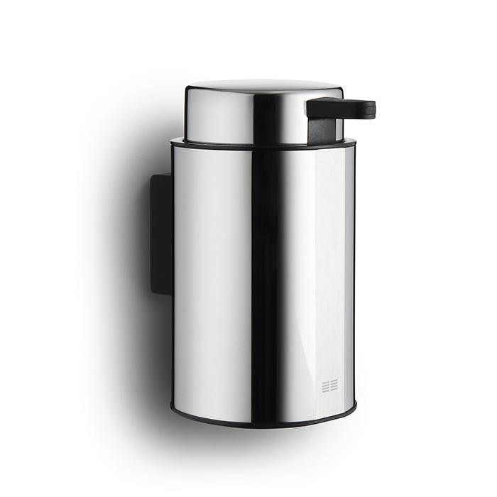 Sæbedispenser med vægophæng. Skrå sæbedosering uanset trykpunkt. Nem aftagelig top for rengøring og påfyldning.