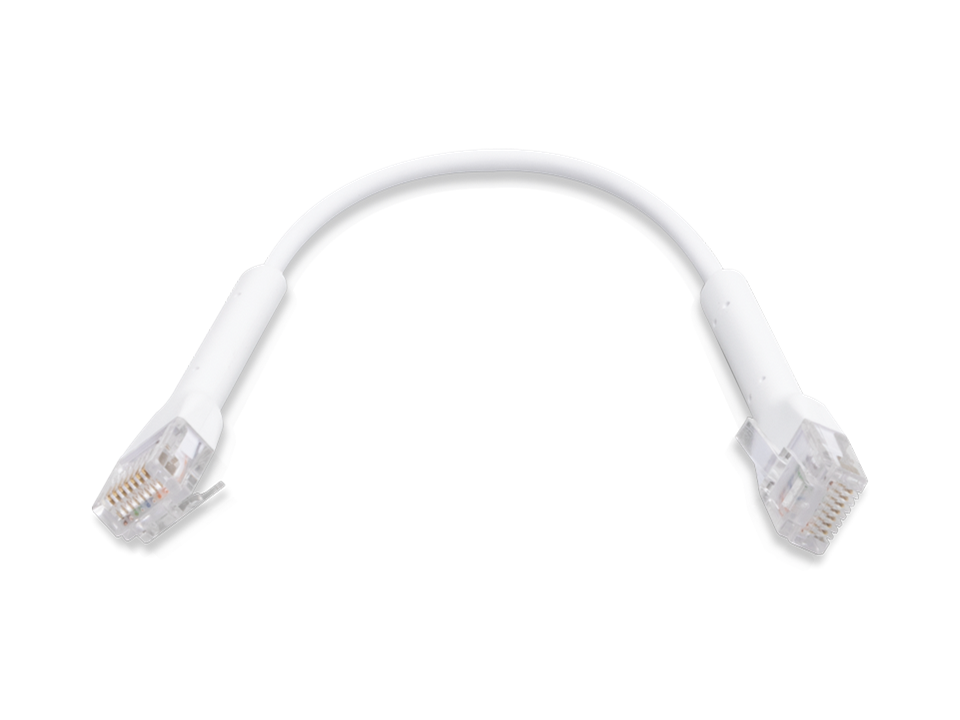 UniFi Ethernet patchkabel med bøjeligt design og RJ45-stik i hvid. Cat. 6.