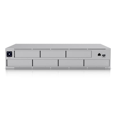 UniFi UNAS-Pro er en 2U rack-mount NAS (Network Attached Storage) enhed, der er designet til at håndtere omfattende fillagring og -deling i større netværk. Med syv drevpladser, der understøtter både 2.5" og 3.5" harddiske/SSD'er, giver denne NAS mulighed for fleksibel og skalerbar datalagring.
